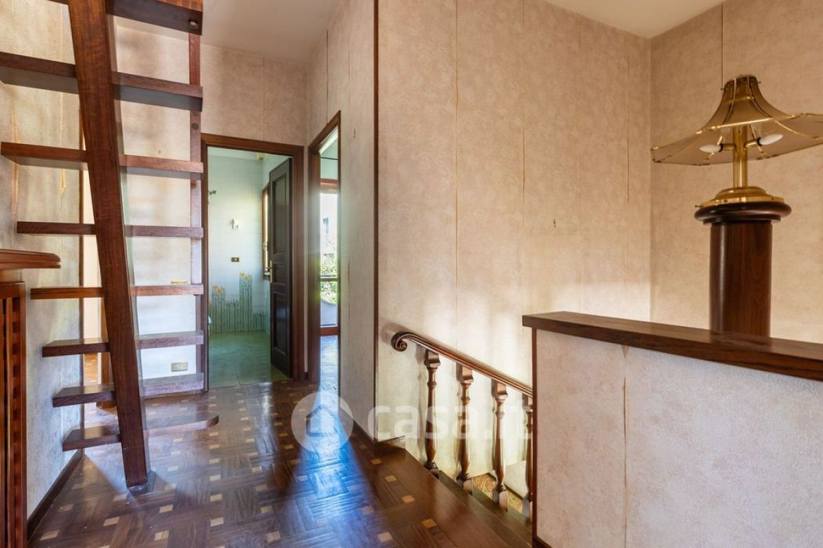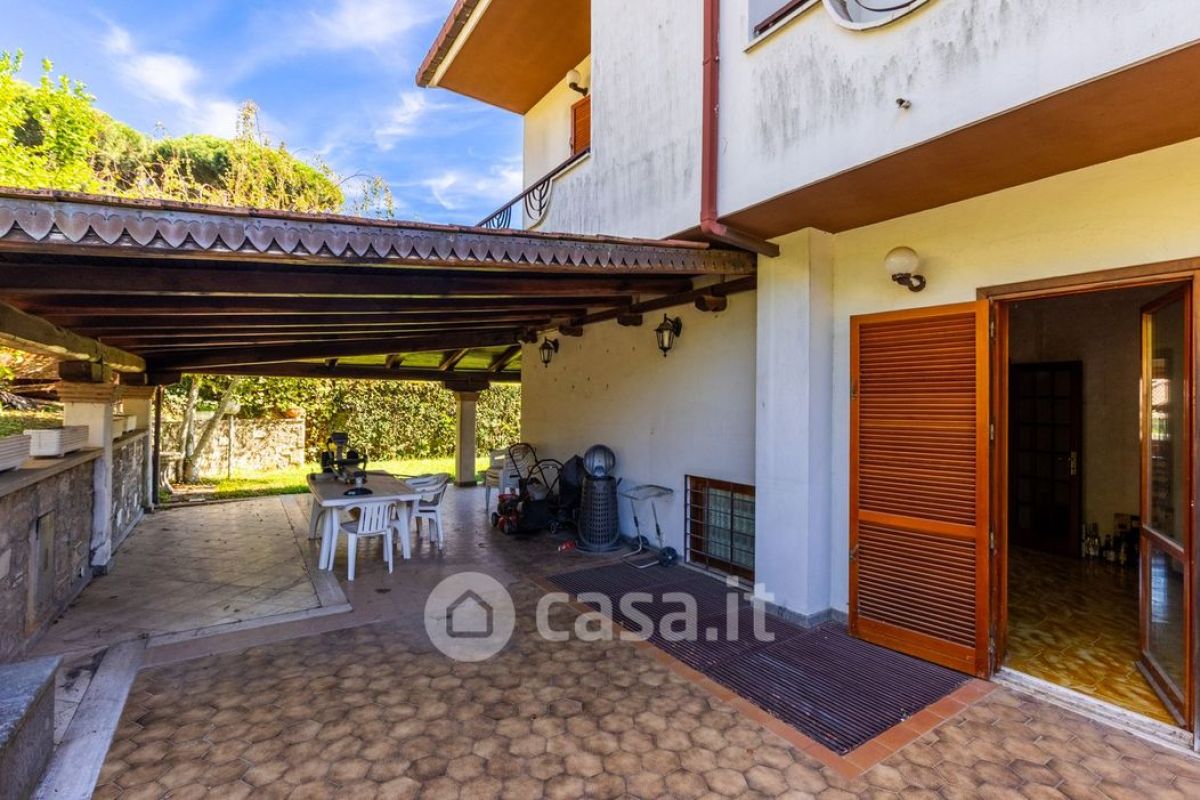 All’interno del comprensorio “Ville di Nemi” rinomato per la sua signorilità e riservatezza e per la posizione strategica proponiamo in vendita una porzione di bifamiliare che si sviluppa su una superficie complessiva di circa 250 mq, disposta su tre livelli con annesso giardino privato di 500 mq in parte pavimentato ed in parte ad area verde. La villa è composta al piano terra da ampio salone doppio con grandi aperture sul giardino, camera/studio con possibilità di trasformarla in cucina, terrazzo e portico; al primo piano sono presenti una camera da letto matrimoniale con bagno ensuite finestrato con ampio balcone con meraviglioso affaccio panoramico, due camere da letto singole e bagno finestrato, entrambe le camere hanno l'accesso sul balcone, tramite una scala in legno si accede alla mansarda con con bagno e terrazzo panoramico; infine al piano seminterrato è presente la sala hobby con angolo cottura, bagno, con uscita su uno spazio esterno pavimentato con barbecue, ripostiglio e due posti auto coperti. La villa anche se necessita di essere ristrutturata, ha un potenziale enorme.