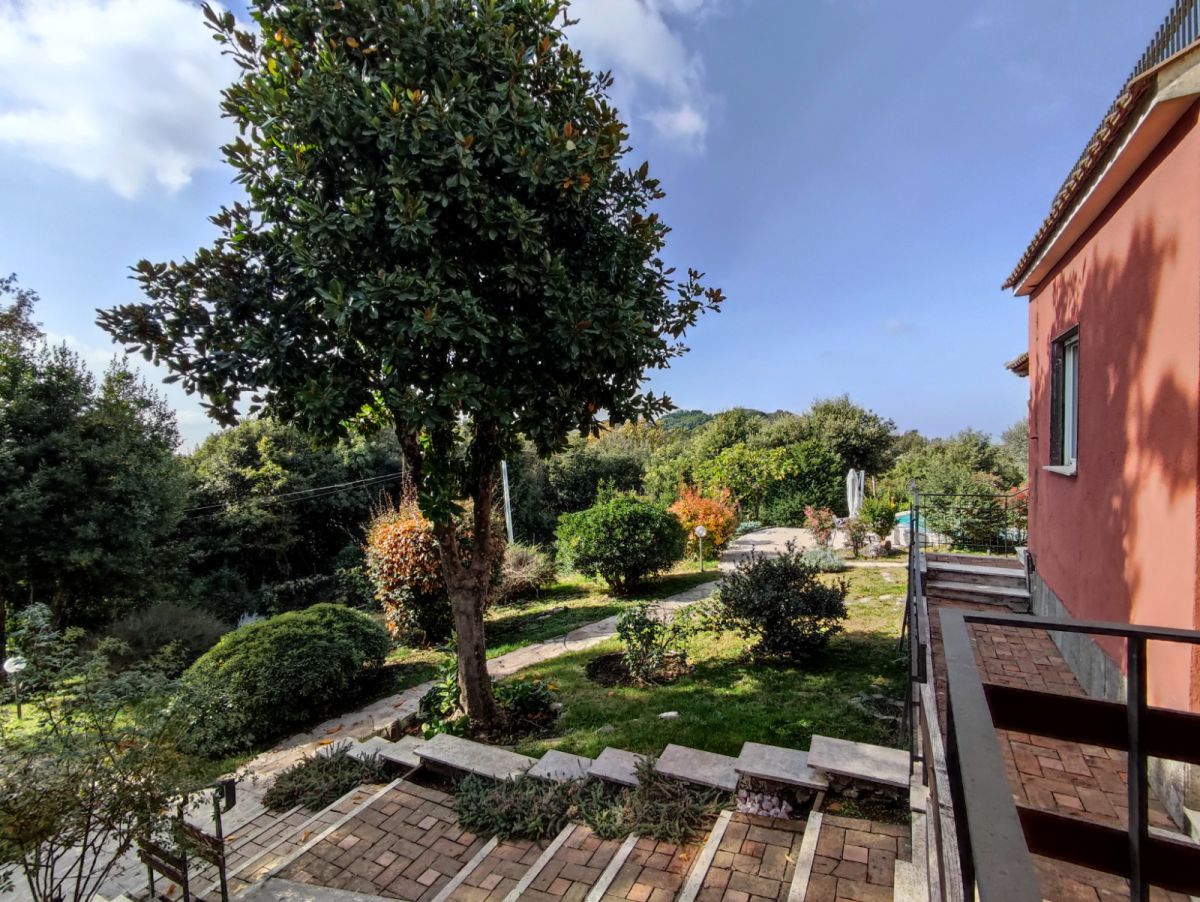 Questa splendida dimora sorge a sud delle porte di Roma, immersa in un parco di lecci secolari di 2800 mq circa con piscina.